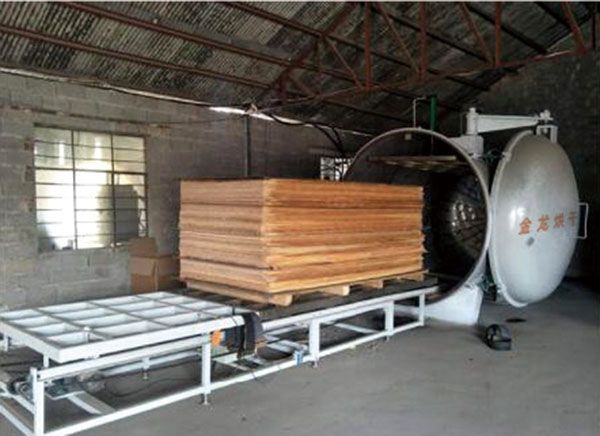 JLM.JLK系列木材專用熱風(fēng)(蒸汽)烘干設(shè)備,可烘干不同樹種、規(guī)格、用途的木材,具有高效節(jié)能,安全可靠、周期短、質(zhì)量高、成本低等優(yōu)點。廣泛用于各類木材加工企業(yè),特別適用于木制品出口企業(yè)。JLM.JLK系列烘干設(shè)備,正常工作時,燃料在燃燒室內(nèi)充分燃燒,換熱系統(tǒng)產(chǎn)生高溫空氣,在循環(huán)風(fēng)機的作用下,將高溫氣流通過控制管道系統(tǒng),輸送到烘干室內(nèi)對木材進行干燥,同時蒸汽發(fā)生系統(tǒng)產(chǎn)生大量常壓蒸汽,根據(jù)烘干工藝要求,通過控制管道系統(tǒng)送入烘干室內(nèi),對木材進行噴蒸調(diào)濕處理,飽和蒸汽可在短時間內(nèi)使木材內(nèi)外濕度一致,從而解除了木材的殘余應(yīng)力。同時,對堅實、厚重的木材可采用我公司研發(fā)的承壓間斷加熱烘干工藝,解決了木材在烘干過程中出現(xiàn)的內(nèi)裂、端裂、變形等缺陷,最大限度提高了優(yōu)質(zhì)木材成品率。并且配有熱能二次利用系統(tǒng),最大限度的降低了排潮所引起的熱能損失,最大限度的降低了烘干成本,縮短了烘干周期。當(dāng)木材含水率低于15%時,經(jīng)過6-8小時的高溫干蒸,可將寄生在木材內(nèi)的所有蛀蟲和蟲卵全部殺死。